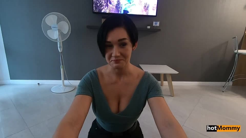 Stiefmutter ist auf den Knien und gibt Stiefsohn einen Blowjob, um ihn anzutörnen und ihm ihre kleine MILF-Muschi zu besorgen.