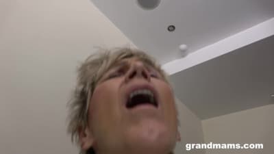 Diese heiße Oma lechzt nach einem frischen Schwanz! Sie trägt schwarze Dessous und wird von einem blonden Kerl geleckt und penetriert!