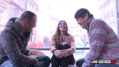 Dieser Kerl wird sich mit einer Tussi anfreunden und sie auf dem Rücksitz eines kleinen Lastwagens mit nicht getönten Scheiben ficken und am Ende einen Creampie mit ihr machen.