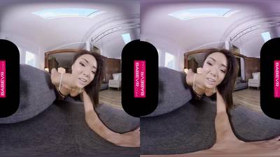 Asiatische Schlampe in Strümpfen Ayumi Anime wird wpov in virtueller Realität mit einem Kerl in Posen ficken und dann mit einem Dildo gefickt werden.