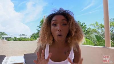 Die beiden Ebenholz-Freundinnen sitzen auf der Terrasse, ziehen sich aus, streicheln und lecken sich gegenseitig die Muschi, bis sie abspritzen.