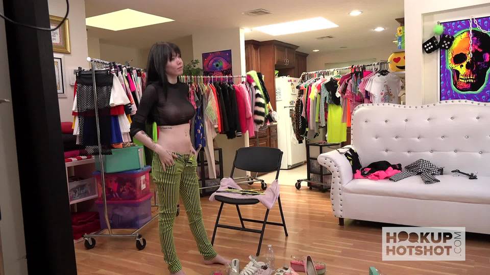 Dieses brünette Mädchen ist für ein Fotoshooting da und beschließt daher, ihre Kleidung zu wechseln. Sie lässt sich ihre Brüste und ihre Muschi flashen