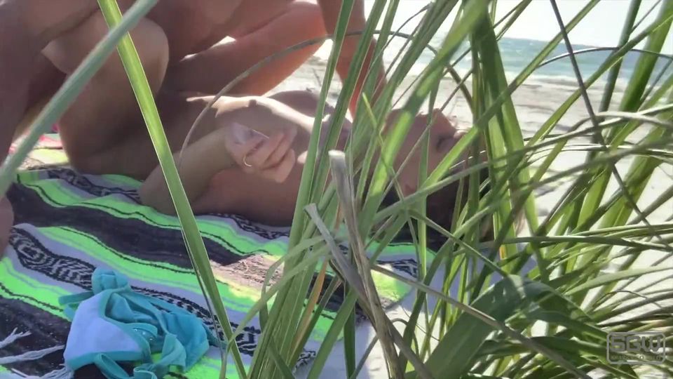 Eine junge Blondine lässt sich am Strand ficken