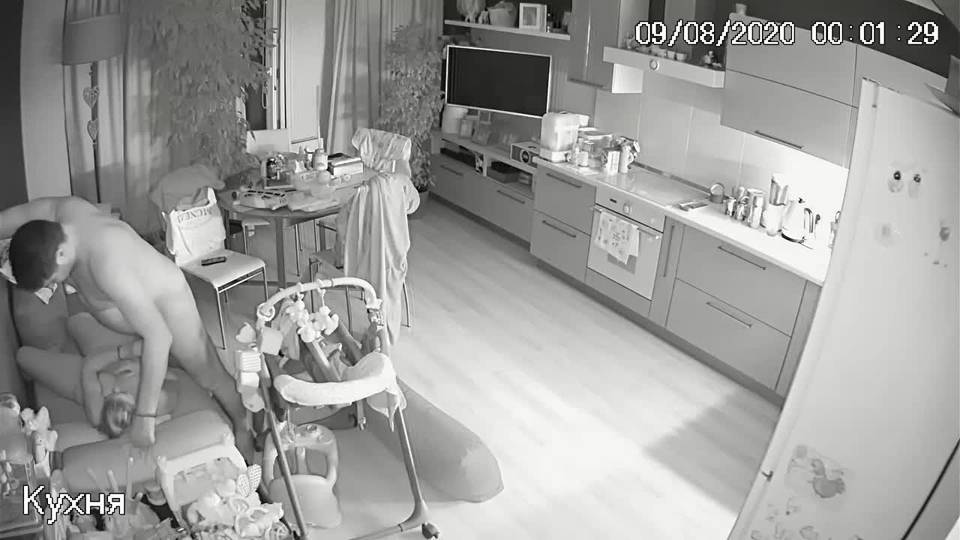 Dieses Paar genießt eine Ficksession in der Küche und vergisst dabei die Überwachungskamera. Er leckt ihre Muschi, sie saugt ihn aus und er fickt sie