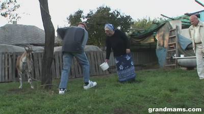 Eine wütende Oma wird im Freien in den Hintern gefickt! Eine wirklich unübersehbare Szene, in der sie das Ficken genießen wird.