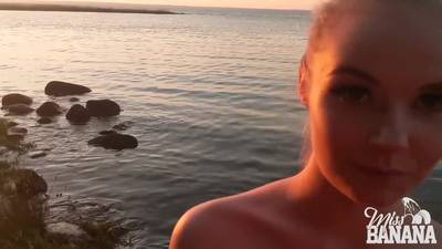 Die junge, schöne Blondine nimmt sich einen Moment Zeit, um den Schwanz ihres Mannes am Fluss zu lutschen, nackt und bekommt das ganze Sperma ins Gesicht.