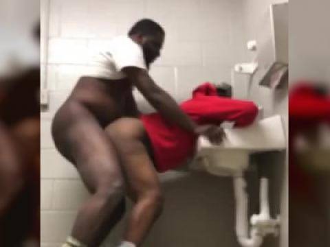 Ein Schwarzer wird in einer öffentlichen Toilette in den Arsch gefickt