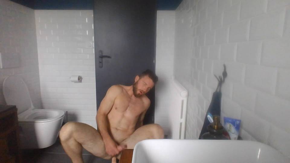 Muskulöser Kerl mit großem Schwanz kommt beim Reiten eines guten Dildos zum Orgasmus,