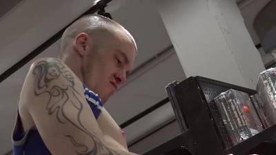 Zwei Schwule treffen in einem Sexshop eine devote Person und haben einen Dreier mit Doppelpenetration.