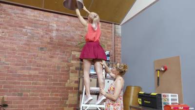 Das unartige Mädchen wird den Arsch ihrer Freundin lüstern anstarren, während sie die Glühbirne wechselt, sie wird es verschlingen wollen und sich um ihre Muschi kümmern.