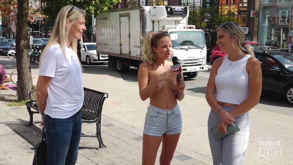 Diese Babes haben keine Angst, denn sie stehen nackt auf der Straße und sehen, wer es bemerkt und wen es interessiert