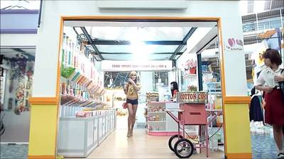 Die Rothaarige geht ins Einkaufszentrum, kauft einen Lutscher und lutscht daran, was sie so anmacht, dass sie sich auf dem Klo einen runterholt!