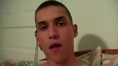 Bret Lawson zerrt an seinem jungen Schwanz, bis er knallhart ist und einen Orgasmus hat