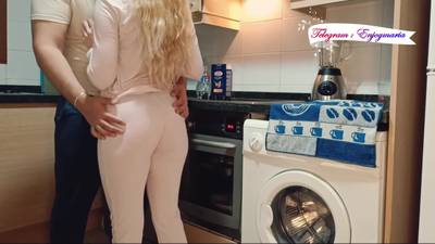 Ich nutze die Abwesenheit meiner Mutter, um den Schwanz meines Stiefvaters zu streicheln, bevor ich in der Küche von hinten genommen werde.