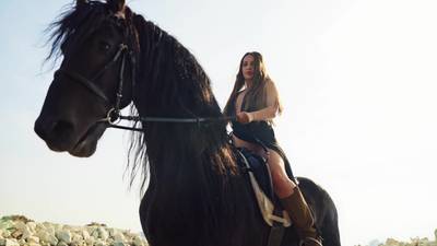 Hier ist die fabelhafte Adelle Torres, die zuerst einen Hengst reitet und sich dann auf den Felsen auszieht, um uns mit ihrem nackten Körper zu erregen.
