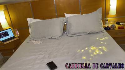 Die atemberaubende Transe Gabriella de Carvalho in einem sexy Weihnachtsmannkostüm und schwarzen Stiefeln masturbiert, bis sie einen Steifen bekommt. Schaue es