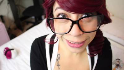 Die junge Schlampe mit Brille liebt es, den Schwanz ihres Liebhabers zu lutschen, mit ihm zu spielen, ihn hochzuhalten und ihn tief in ihrem Doggie-Fick
