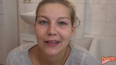 Eine blonde und sexy MILF uriniert ohne jegliche Bescheidenheit in den Mund ihres Partners. Als Belohnung gibt sie ihm einen Blowjob