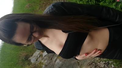 Eine sexy Brünette mit langen Haaren und Brille lutscht einen dicken Schwanz ohne Hemmungen im Freien. Diese Schlampe hat auch einen Analplug!