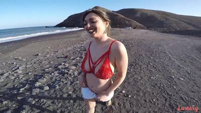 Schönes spanisches Paar fickt in POV am Strand, sie hat große natürliche Titten, aber der Kerl entscheidet sich für einen Creampie in ihrer Muschi.