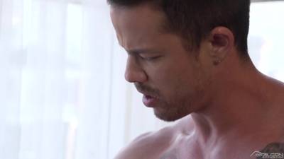 Die Leidenschaft zwischen diesen gutaussehenden Schwulen ist sichtbar! Jack Hunter und Nic Sahara ficken sich gegenseitig auf dem Sofa