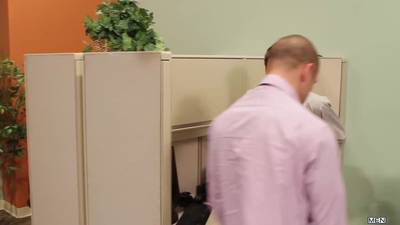 Zwei Bürokollegen bleiben nach der Arbeit noch zusammen, um im Stehen und im Sitzen zu ficken. Mike De Marko und Rod Daily in einer heißen Szene!