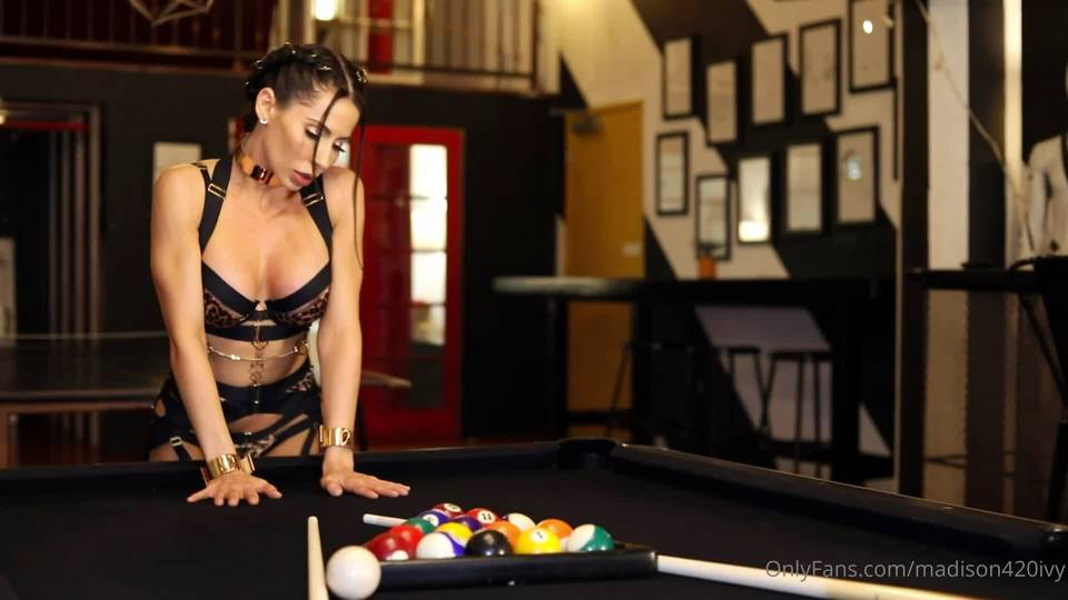 Die schöne Madison Ivy zieht sich sexy schwarze Dessous und Strümpfe an. Sie zeigt uns ihren herrlichen Körper und die Doppelpenetration mit zwei Dildos