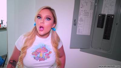 Die sexy, vollbusige Blondine Kali ruft den Haustechniker an, um ihren Fernseher zu reparieren, aber es endet damit, dass sie seinen Schwanz verschluckt