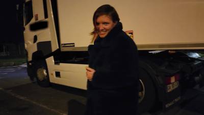 Wir werden von einem Trucker überrascht, als ich meinen Mantel öffne und nur meine Unterwäsche trage,