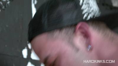 Muskulöse Hengst zögert nicht, seinen schwulen Untergebenen zu ficken, auf ihn zu pissen und ihn in alle seine Löcher zu penetrieren in diesem schwulen Video