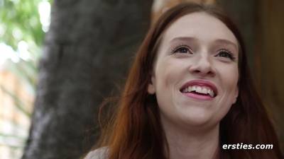 Ein junges rothaariges Mädchen masturbiert alleine vor der Kamera. Sie ist sexy und streichelt ihre enge Muschi mit ihren Fingern, aufregend!