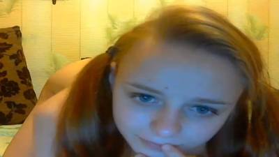 Mädchen mit Zöpfen benutzt einen Dildo, um sich selbst zu erfreuen