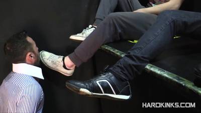 Mikel Bosco und Tyler Roding dominieren diesen Sub auf der Afterparty. Sie spucken ihm ins Gesicht und lassen ihn ihre Füße lecken, bevor sie ihn fesseln.