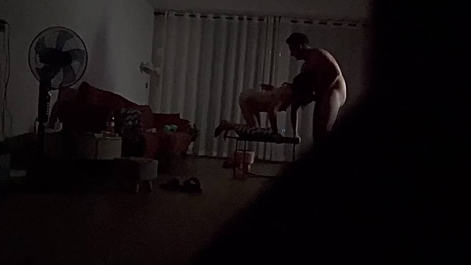 Asiatische Frau gefickt auf einem Hund in der Dunkelheit zu Hause