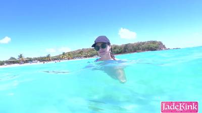 Hier ist ein riskanter Fick, weil sie es vor Fremden an einem Strand tun! Sie sind sehr geil im Urlaub!