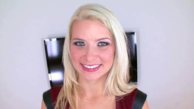 Sexy Blondine mit schönem Lächeln freut sich, hier zu sein, um deine Entenschwanzbedürfnisse zu befriedigen und dann gefickt zu werden