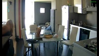 Diese umwerfende Blondine genießt es, mit ihrem Freund in der Küche im Doggy-Style gefickt zu werden und macht im Wohnzimmer weiter, bis er abspritzt!