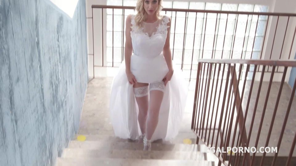 Sie sieht so schön und erregt aus in ihrem Hochzeitskleid, während sie sich schlampig verhält und wie eine Schlampe benimmt, in dem Wissen, dass sie nach einer Weile gangbanged wird.