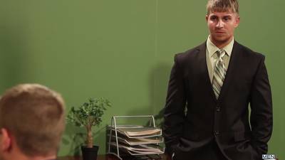 Im Büro des CEOs wird Logan Vaughn in dieser heißen Szene von dem muskulösen Colby Jansen gefickt.