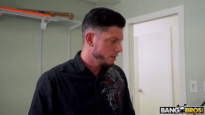 Ein attraktives Dienstmädchen mit einem großen Arsch und großen Titten, Melody Foxx reinigt das Zimmer eines Kerls, der ihr Geld für Sex bietet.