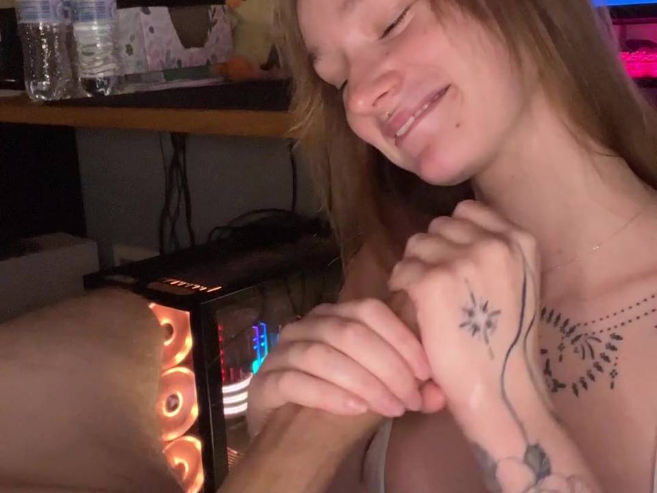 Amateur Mädchen wichst ihren Liebhaber vor der Kamera