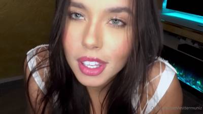 Brünette Göttin in sexy weißer Kleidung masturbiert ihre Muschi bis sie abspritzt, in diesem Amateurvideo.