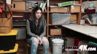 Diese hübsche Brünette wurde von einem Sicherheitsbeamten erwischt, der sie in sein Büro brachte, um sie zu filzen und dann zu ficken.
