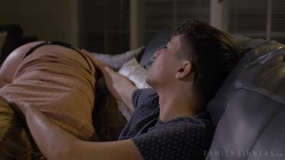Sie hat große Titten und einen guten Arsch, um ihrem Schwiegersohn beizubringen, wie man seinen steifen Schwanz benutzt und den müde wirkenden jüngeren Schwanz aufmuntert.