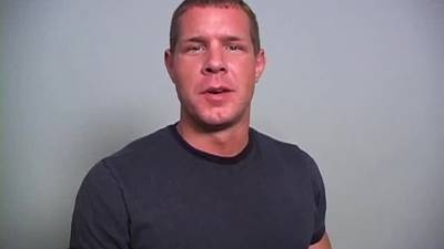 Der gutaussehende Warren Wood streichelt seinen fetten Schwanz mit Leidenschaft, bis er über sich selbst und auf der Couch explodiert.