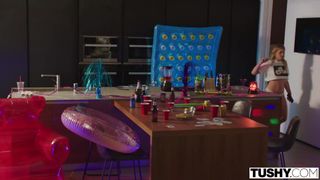 Eine junge Emo mit grünen Haaren saugt leidenschaftlich und gekonnt den Schwanz ihres Liebhabers und setzt sich dann mit einer feuchten, Muschi darauf!