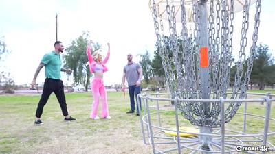 Die blonde Kelsey Kane ist mit zwei Männern im Schlafzimmer, wo sie ihre dicken Schwänze lutscht, sie deepthroats und es ihnen gut besorgt,