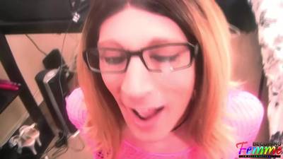 Transsexuelle Jessica Lynne setzt ihre Brille auf, um einen Schwanz in POV zu lutschen und ihren Arsch versohlt zu bekommen. Sie wird sich den Schwanz schnappen