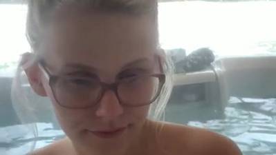 Blonde Amateurin, die sich nackt per Webcam in einem Pool filmt