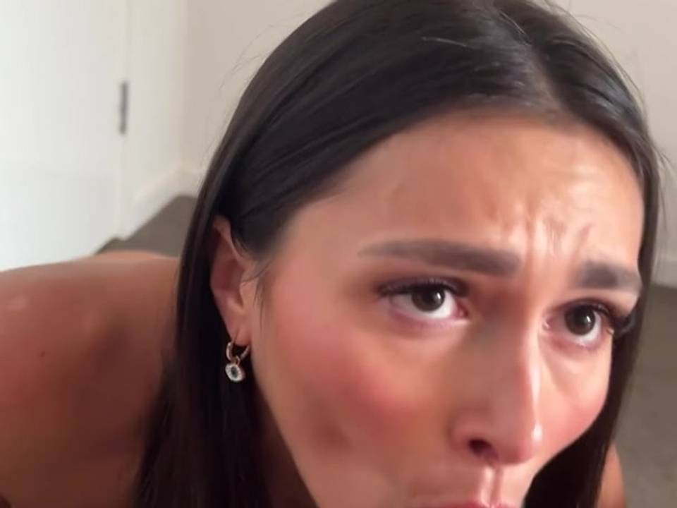 Brünette, die leidenschaftlich und geduldig einen Schwanz lutscht